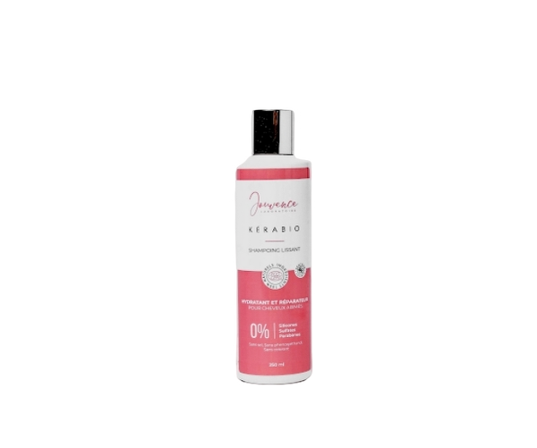 Le Shampoing Lissant Kerabio de Jouvence est un shampooing Hydratant et réparateur pour cheveux abimés à la Senteur de jasmin Sans Silicones, sans Sulfates, sans Parabènes, sans sel, sans phenoxyéthanol, sans colorant.