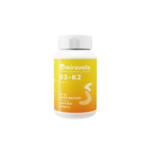 Les vitamines  D3 et K2 travaillent en tandem pour maintenir la santé osseuse, prévenir la calcification des vaisseaux sanguins et favoriser une bonne coagulation.